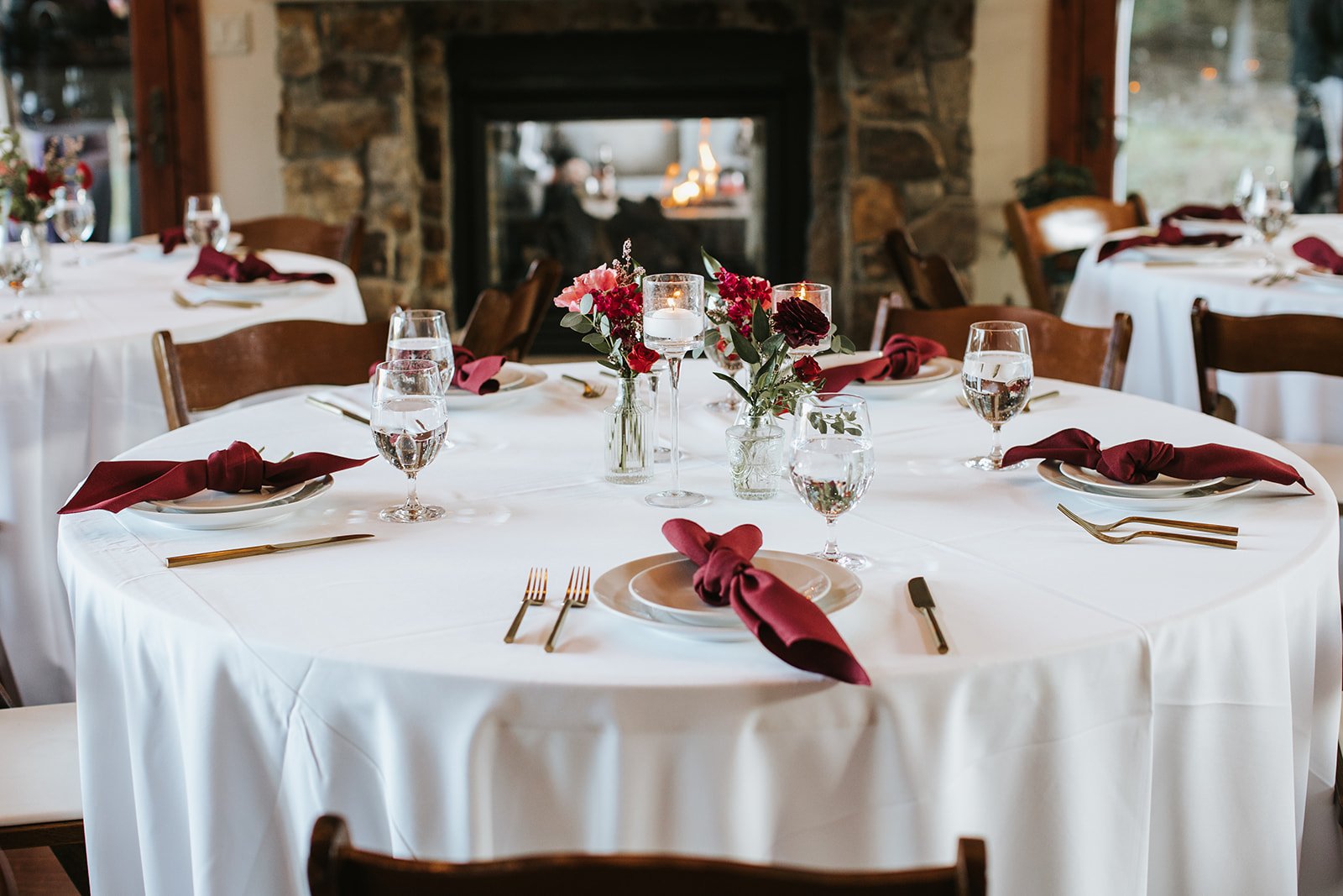 We include banquet tables and chairs for up to 50 guests, the choice between 3 pre-set lounges, a dessert table, card & gift table, and an arch for the ceremony site. For the tablescapes we include disposable or compostable plates and cutlery, cloth napkins, table runners, vases, floral, and candles.